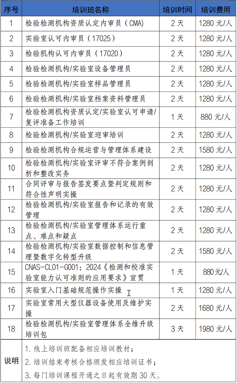 (一)检验检测机构资质认定/实验室认可内审员培训班